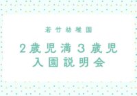 2歳児の入園は認定の種類も多く、我が子が何に当てはまるのか、いつから入園ができるのかわかりにくいですよね。 若竹幼稚園ではさらに認定をとらず園に通える『毎日登園』もあります。 普段の入園説明会では全学年向け […]